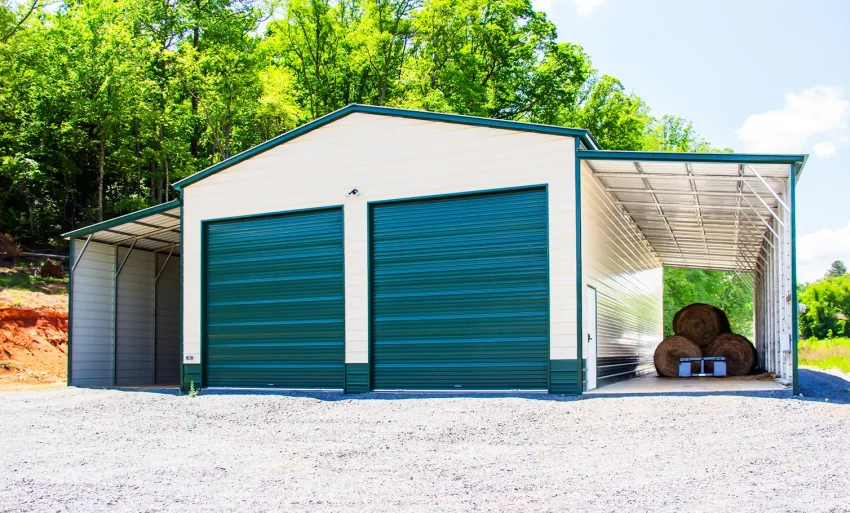 Your ideal metal barn is here! This 58x50x12 Lean To building offers space and strength. Buy your 58x50 metal building now with easy customization!